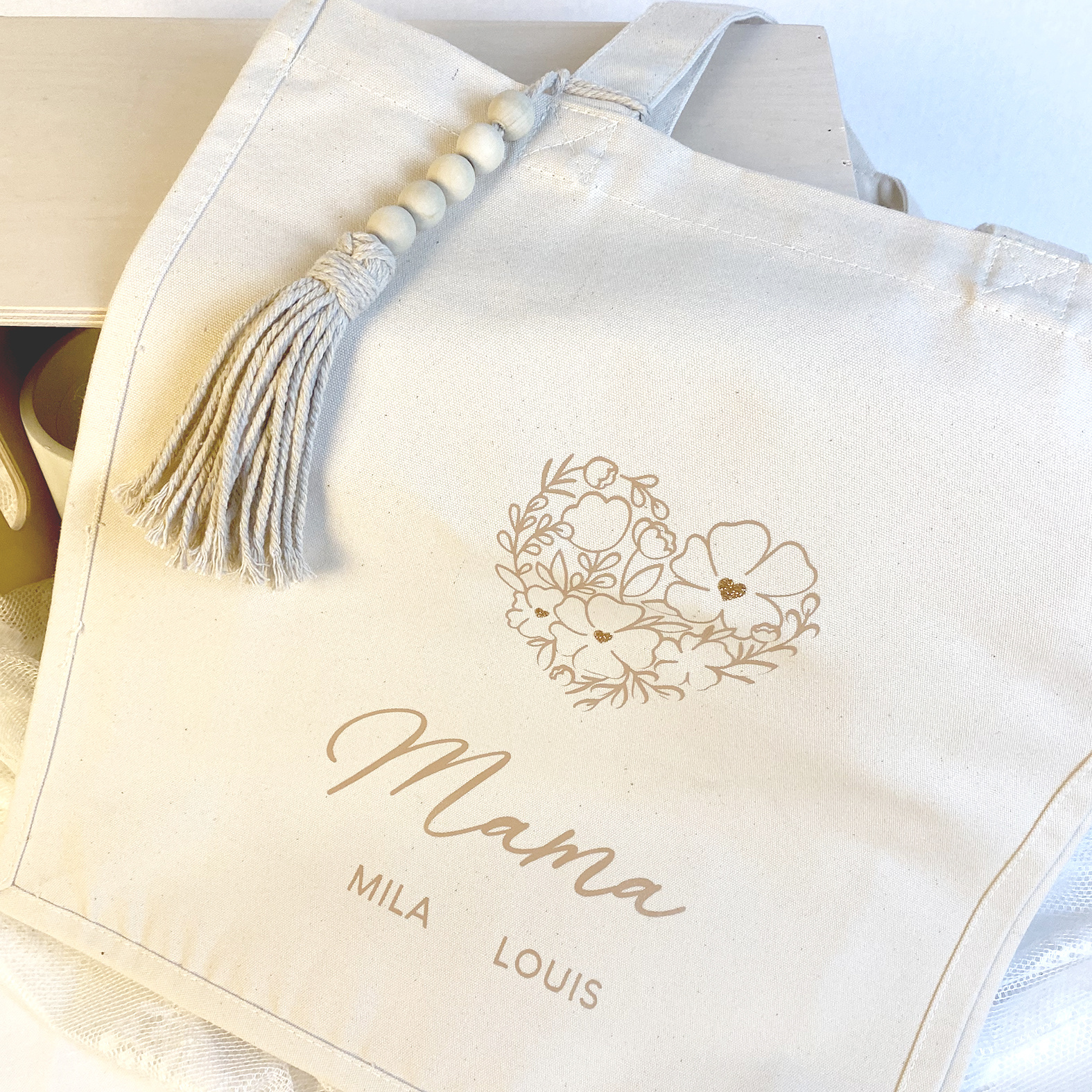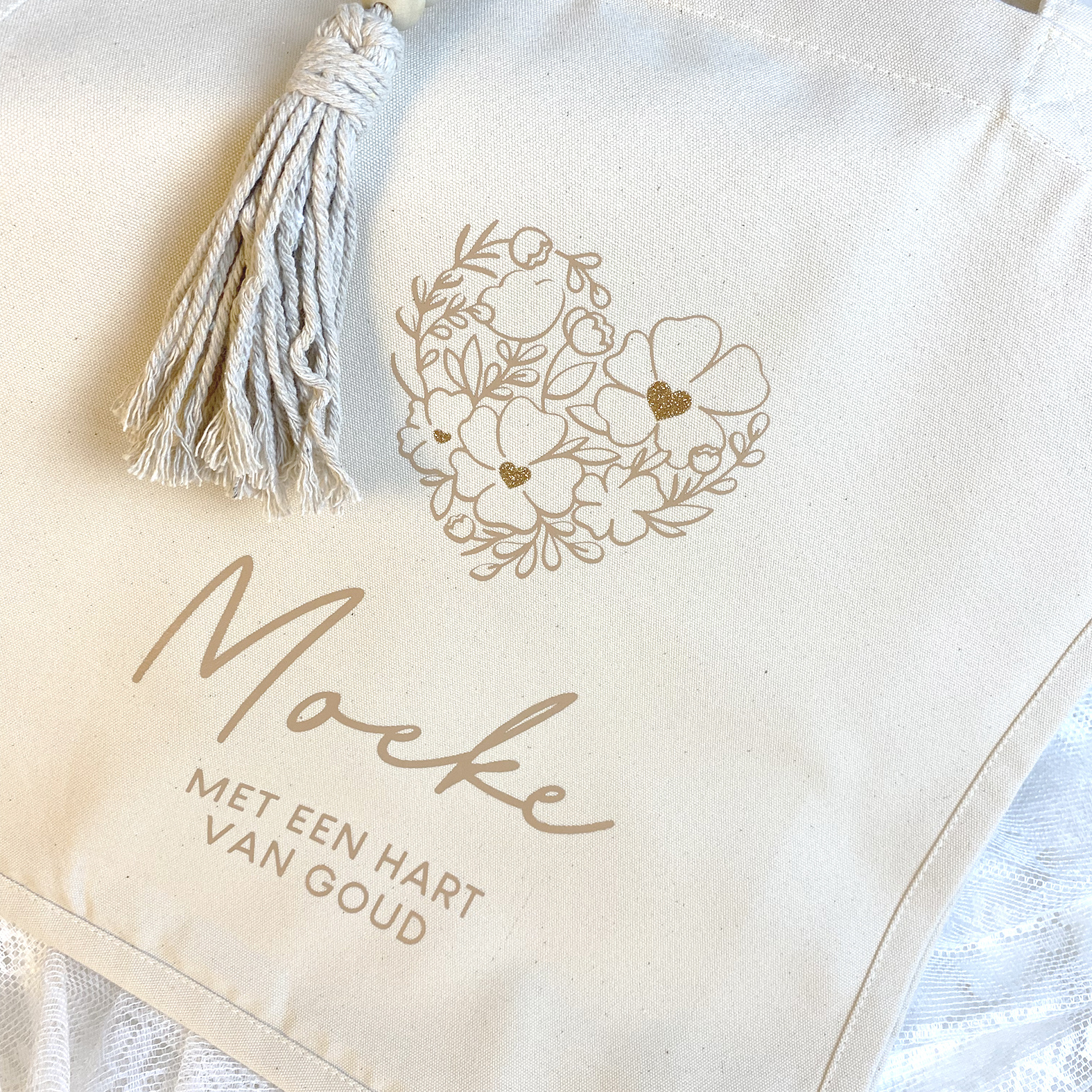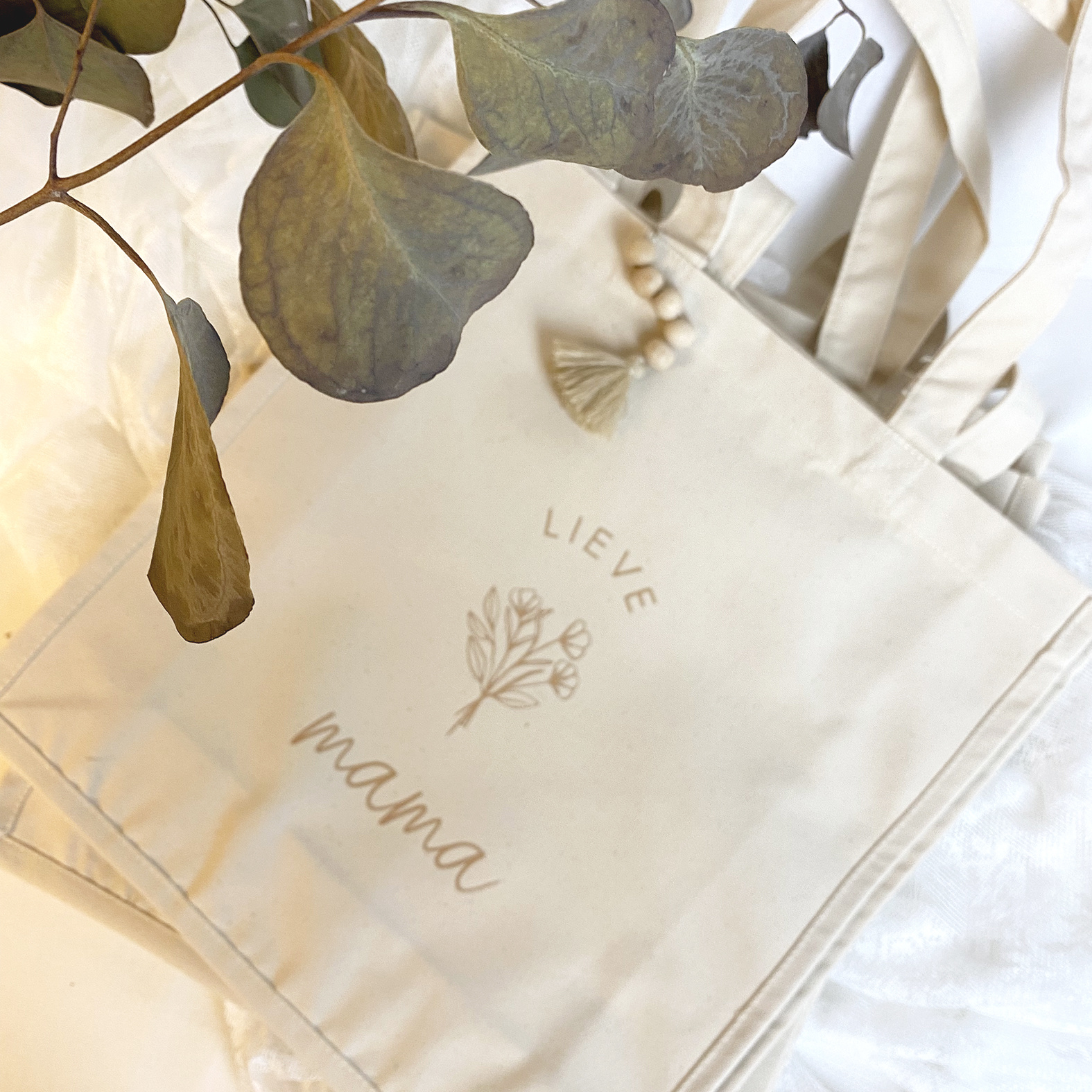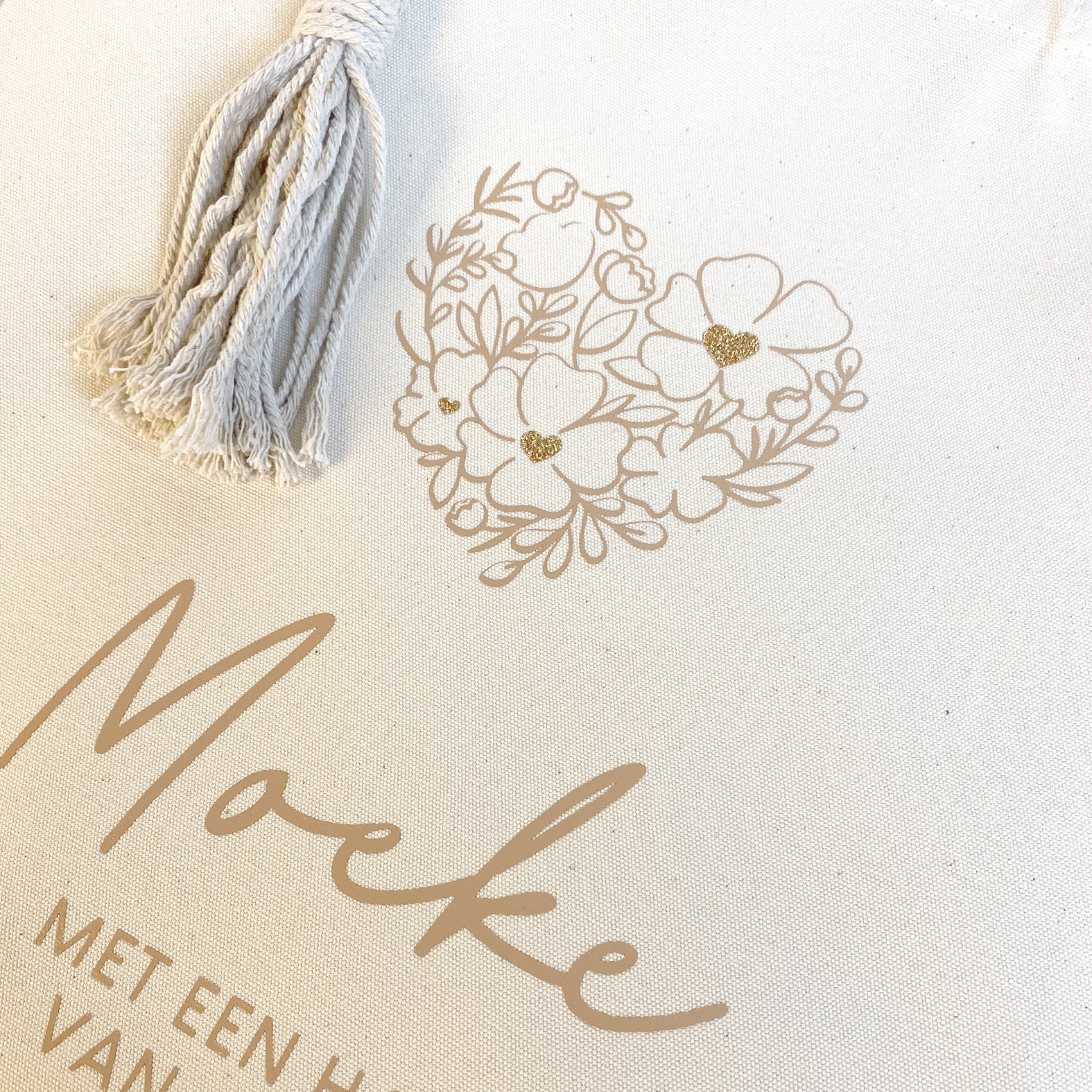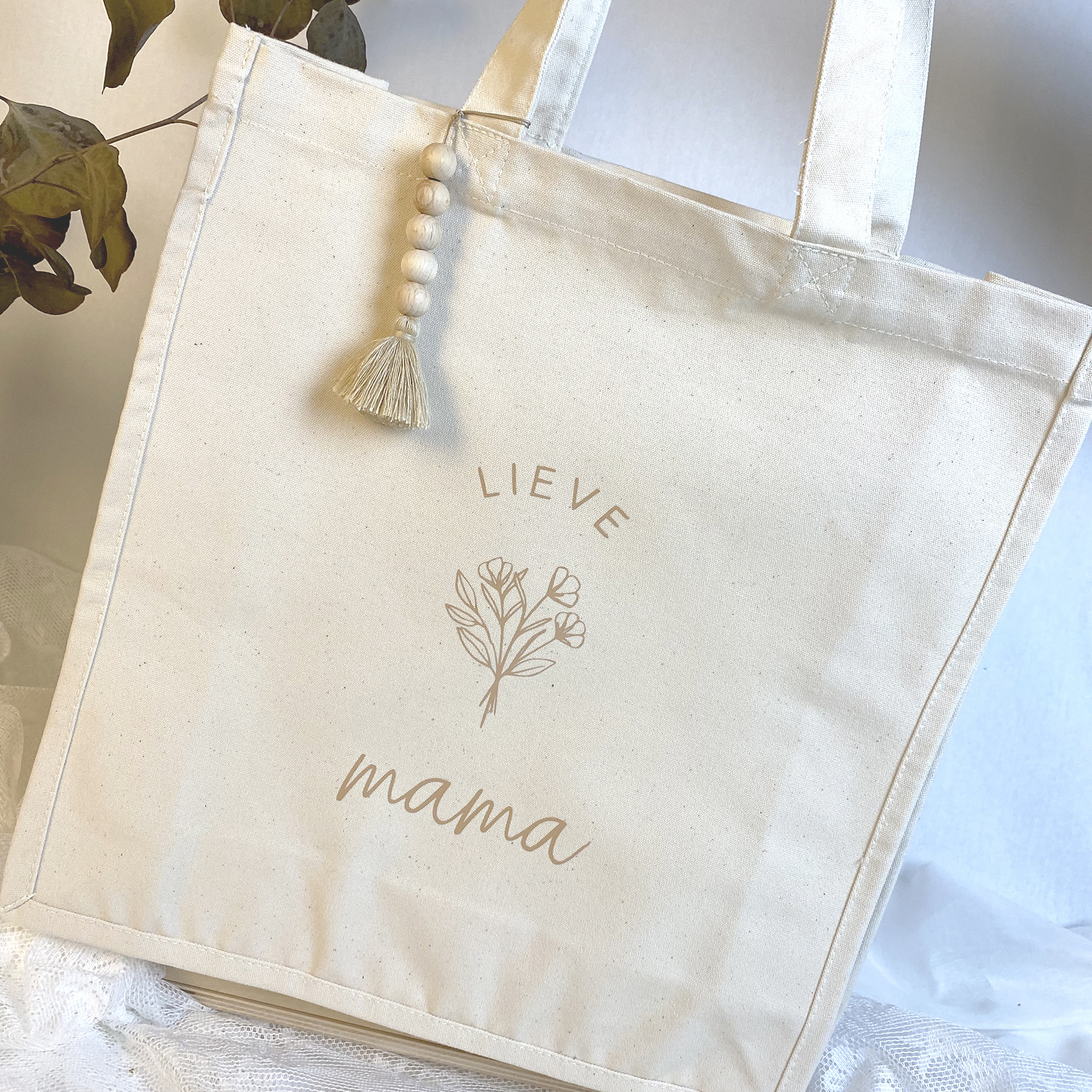Tote bag uit stevig canvas met een boho tashanger