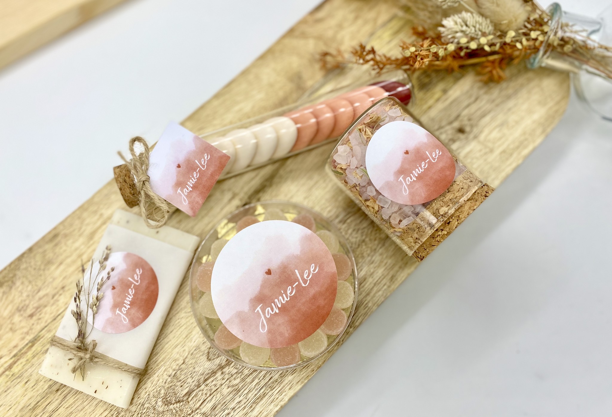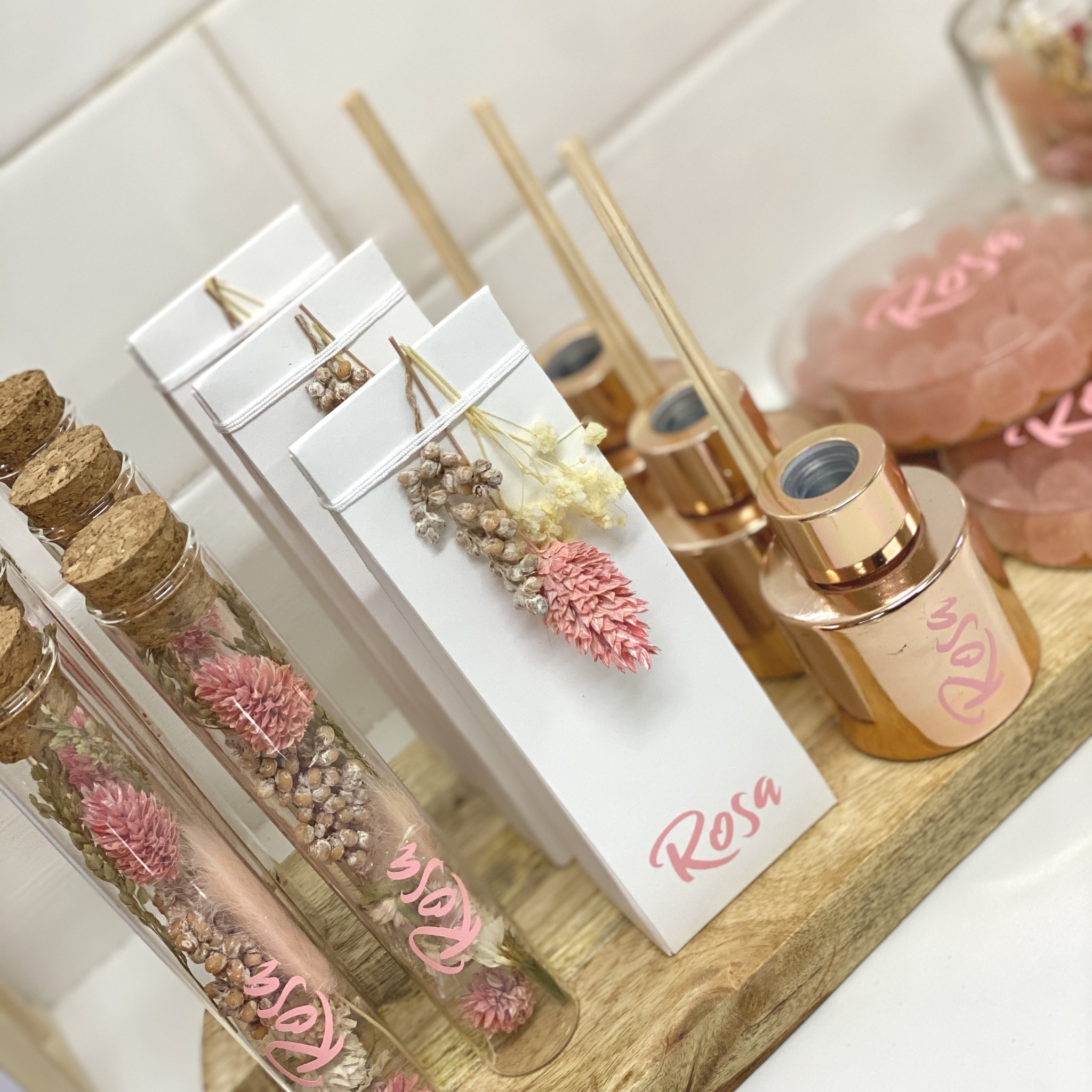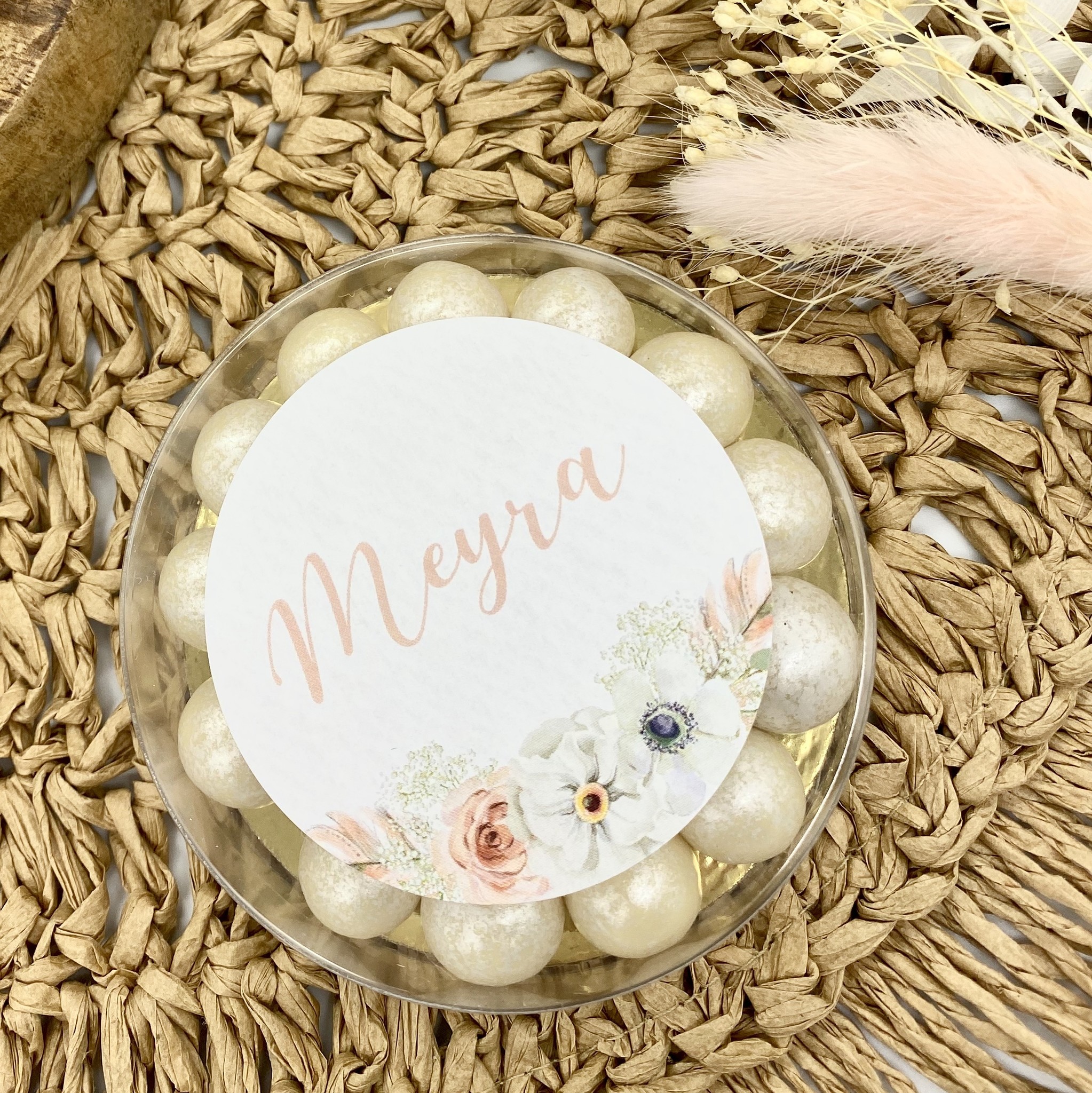 Nadat het geboortekaartje min of meer vastligt, kunnen we beginnen met het samenstellen van jullie doopsuikers. Meestal worden er zo'n 5 verschillende verpakkingen gekozen. Deze kunnen gevuld worden met traditionele suikerbonen en smarties, maar ook hippere alternatieven zoals snoepjes, zeep, plantjes, ... behoren tot de mogelijkheden. We maken steeds een voorbeeld van de gekozen verpakkingen in jullie concept. Zo weten jullie exact hoe het eindresultaat er zal uitzien en zijn er achteraf geen verrassingen.